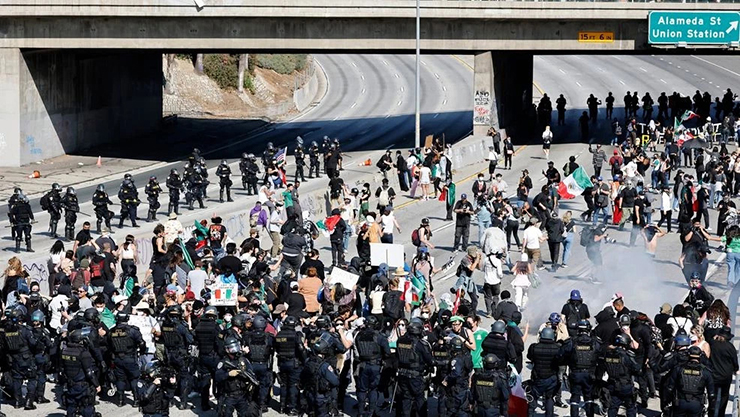 Protests erupt in Los Angeles and other parts of California following a series of Immigration and Customs Enforcement raids targeting undocumented immigrants, including at workplaces such as Home Depots, clothing stores, and construction sites. The raids, part of the Trump administration’s mass deportation efforts, lead to dozens of arrests and spark widespread demonstrations, with some escalating into riots involving clashes with LAPD and ICE agents, vandalism, arson, and highway blockades. Over 1,000 protesters surround federal buildings, assault officers, and damage property, prompting President Trump to federalize the California National Guard and deploy 2,000 troops to restore order.