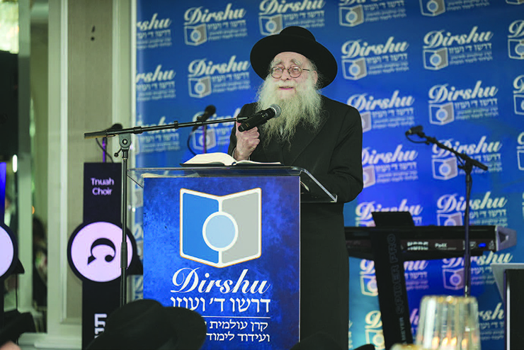 Emotion gripped the assemblage. Wide-eyed with awe, everyone watched the Gaon and Tzaddik, HaGaon HaRav Shimon Galei, shlita, walk into the hall of the White Shul in Far Rockaway, arm-in-arm with the Nasi of Dirshu Rav Dovid Hofstedter, shlita. It was just a harbinger of what was to come in a night full of spiritual and emotional highlights that brought together some five hundred members of the Far Rockaway-Five Towns communities.