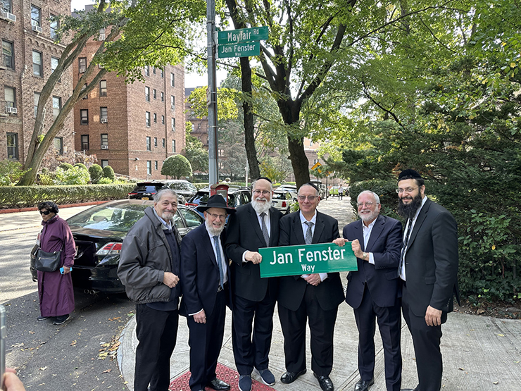 In her personal remarks, Schulman shared, “The date for today’s street co-naming was set a few weeks ago, and it is very much worth mentioning that this event is occurring the same week that the hostages in Israel were released by the Hamas terrorists. Jan was a Zionist, and it was apropos for these two occasions to overlap. Jan was a fixture in both the Jewish community and the neighborhood in which she lived and served on the community board. Now, 116th Street and Mayfair Road will from here on be known as Jan Fenster Way.”