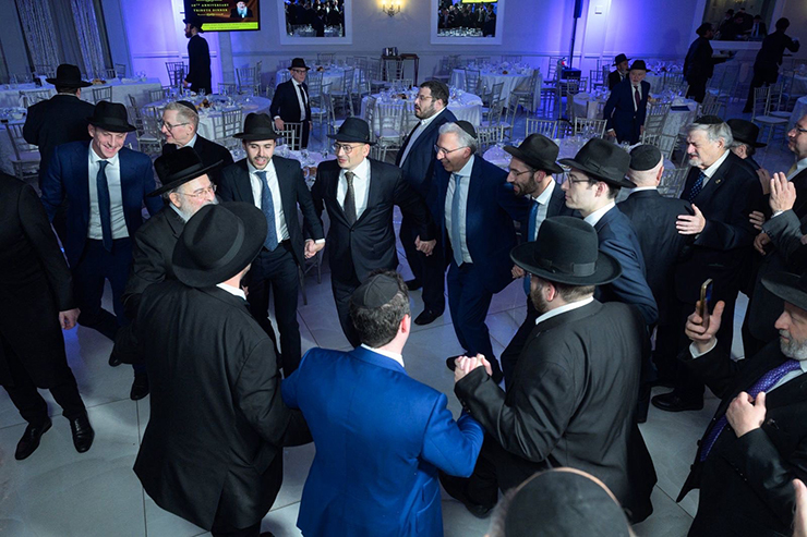 Following the Rav’s words, the evening transitioned into spirited dancing led by Rabbi Ophie Nat and Rabbi Moshe Hamel. Circles of mispallelim, students, and longtime friends filled the ballroom.