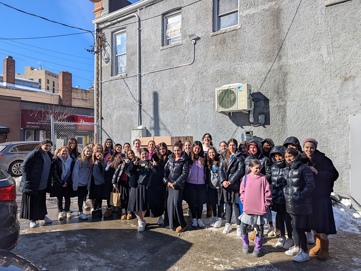Students and guests had the opportunity to participate in performance art, created by our resident pop artist, Rabbi Yitzchok Moully. Using ten different paint colors and large syringes, students and guests took turns to squirt paint in order to form drip lines on a white canvas. They watched how the paint pooled to the bottom of the canvas. At the event, the artist photographed different guests; representing HAFTR students, faculty and parents. A student with a globe, another holding a tz’dakah box, a rebbe teaching Torah from a sefer, and a mother walking her daughter to school, will become part of nine silhouettes the artist will affix onto the mural. When complete, the mural entitled, “9 Plus 1” will adorn our hallway.