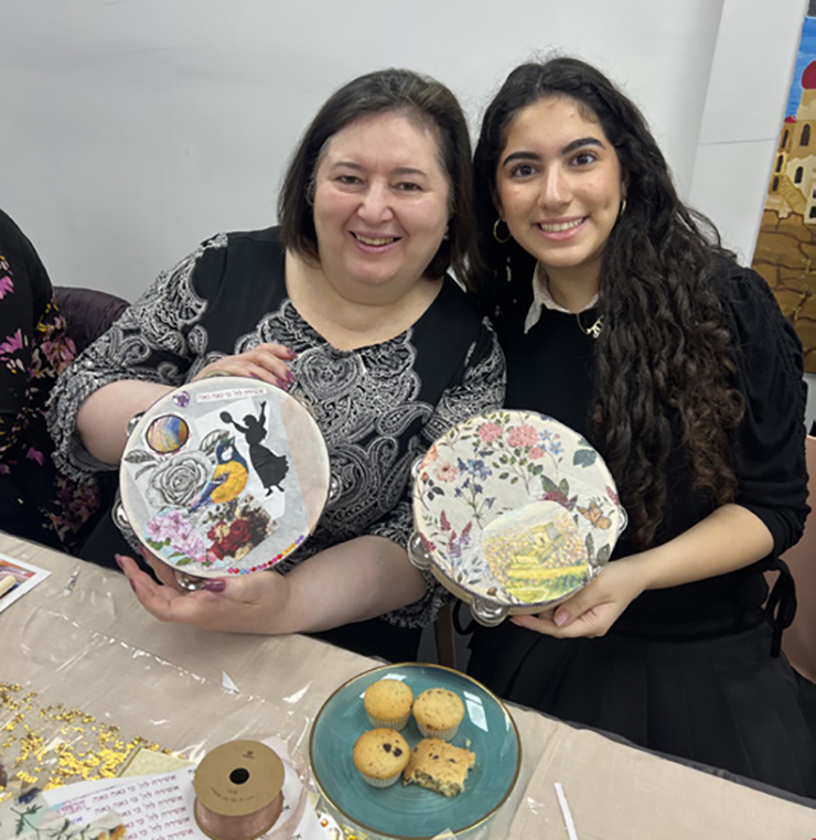 Next, the girls participated in a project called “Bitachon in Hand,” where they decorated tambourines in preparation for the arrival of Mashiach Tzidkaynu. Inspired by Miriam, who, as part of her preparation for the g’ulah during Yetziat Mitzrayim, held a tambourine in hand, the girls followed her example. They decorated tambourines using découpage techniques, transforming each tambourine into a symbol of hope, emunah, and anticipation for the future.