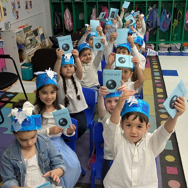 The Early Childhood Program enjoyed an amazing hands-on, tailored program of their own. Students grabbed their passports, boarded an El Al plane, and arrived in Israel for a short visit. In Yerushalayim, they davened at the Kotel and bought snacks at the shuk with sh’kalim. Students ventured south to Eilat, where they snorkeled and found seashells. They also planted trees in the Galil, and their busy trip concluded with a stop in Tzfat, the holy northern city, where they made beautiful, colorful candles and artwork.