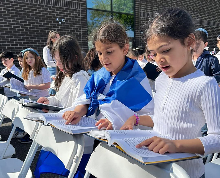 The next day, Yom HaAtzmaut, was a day like no other. After davening, the entire school gathered outside in the yard to participate in YCQ’s annual school-wide musical Hallel. Over 1,000 students and staff members sang and praised Hashem for the gift of Medinat Yisrael. Led by JHS rebbi and Jewish music star Rabbi Ophie Nat, the sea of blue and white was a remarkable display of achdus and hodaah. Throughout the day, students participated in special lessons, games, and activities connected to Eretz Yisrael, including a meaningful kumsitz.