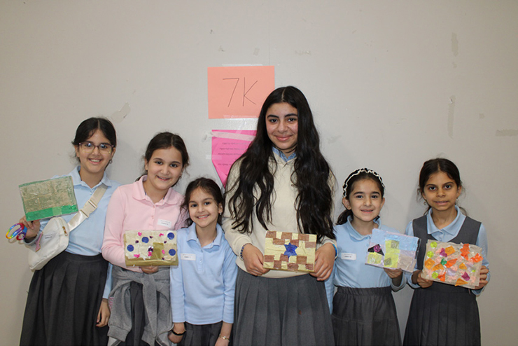 Students from all grades came together in mixed-age “families,” each working collaboratively to craft a unique scene of Yerushalayim. Using colored tissue paper, clear plastic, and Mod Podge, the groups created luminous, stained-glass-style artworks that depicted iconic elements of the holy city. When combined, these individual pieces formed a sweeping panoramic view of Yerushalayim: a shared vision brought to life by many hands and hearts.