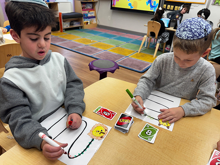 Learning is always fun at Lev Chana! Students used Uno cards to play number and color games in math.