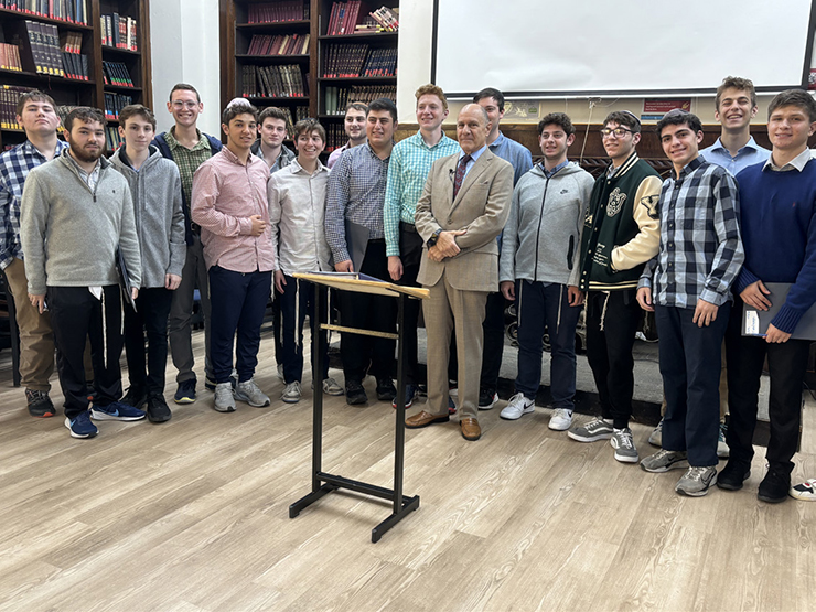 Seniors in MTA’s Names, Not Numbers Holocaust Documentary elective participated in a meaningful lunchtime assembly with a special guest. Jeff Salgo, a retired CBS News Producer, shared best interviewing practices he developed over more than 35 years in broadcast journalism. His goal was to help students prepare for their upcoming interviews with Holocaust survivors.