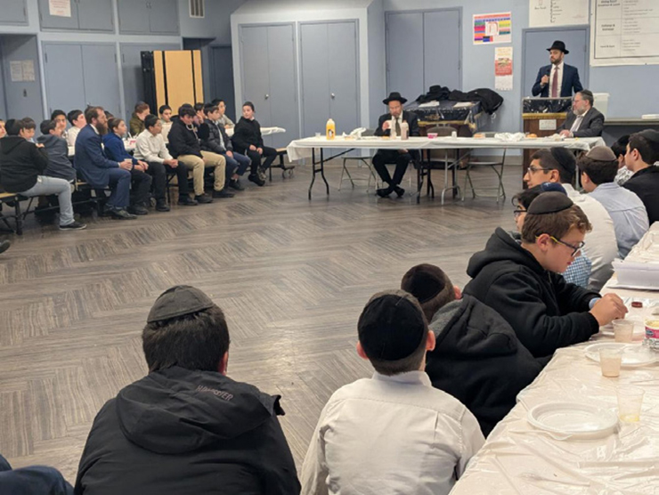 Meanwhile, students in Grades 1–4 and 7–8 marked Rosh Chodesh Kislev with their own festive mesibos in the yeshivah dining room. The Junior High enjoyed a special Rosh Chodesh breakfast followed by inspiring divrei chizuk from Rabbi Yisroel Kramer, rav of Kehillas KGH and Rosh HaYeshivah of Yeshivas Maayan HaTorah.