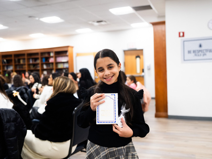 The evening concluded with joyous dancing, delicious dessert, and a meaningful gift: Each girl received a beautiful siddur sponsored by the PTA.
