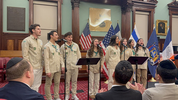 The program then shifted to cultural expression with a performance by the Israel Scouts Friendship Caravan, introduced by Council Member Lynn Schulman. Part of a global Israeli youth movement founded in 1919, the Scouts are composed of Israeli teens who tour North America annually, sharing Israeli culture while fostering leadership and Jewish connection. Their vibrant performance blended Hebrew and English song with movement.