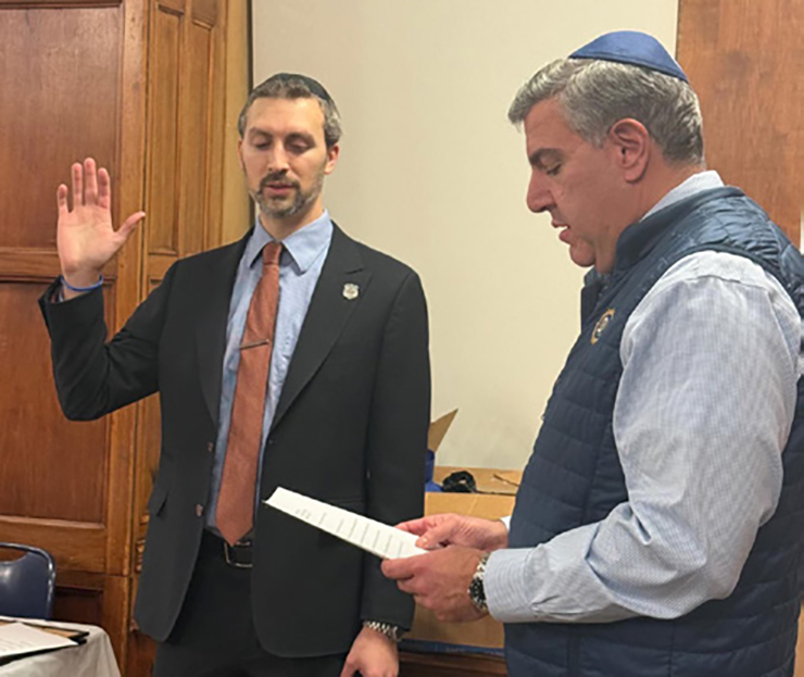 The evening’s centerpiece was the formal passing of leadership, as outgoing President Lieutenant Ben Gelber handed the gavel to incoming President Detective Josh Zucker, formerly of Hashevaynu in Kew Gardens Hills and now a West Hempstead resident. The incoming board was officially affirmed by NYS Courts Major Craig Brooks, while Detective Zucker was affirmed by Deputy Chief Andrew Arias, Commanding Officer of Detective Borough Brooklyn South – underscoring the Society’s close relationship with NYPD leadership and the broader law-enforcement community.