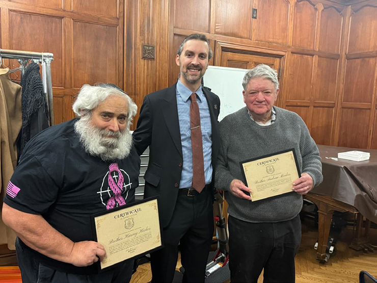 President Zucker also used the occasion to honor individuals whose behind-the-scenes dedication has helped shape the Society’s legacy. Past President and retired Sergeant Harvey Hecker received an achievement award recognizing 30 years of service as the Society’s newsletter editor, documenting its milestones and keeping members connected across generations. Past President and retired Lieutenant Andrew Menkes was similarly honored for his longstanding role as Society historian, preserving the organization’s institutional memory and rich history.