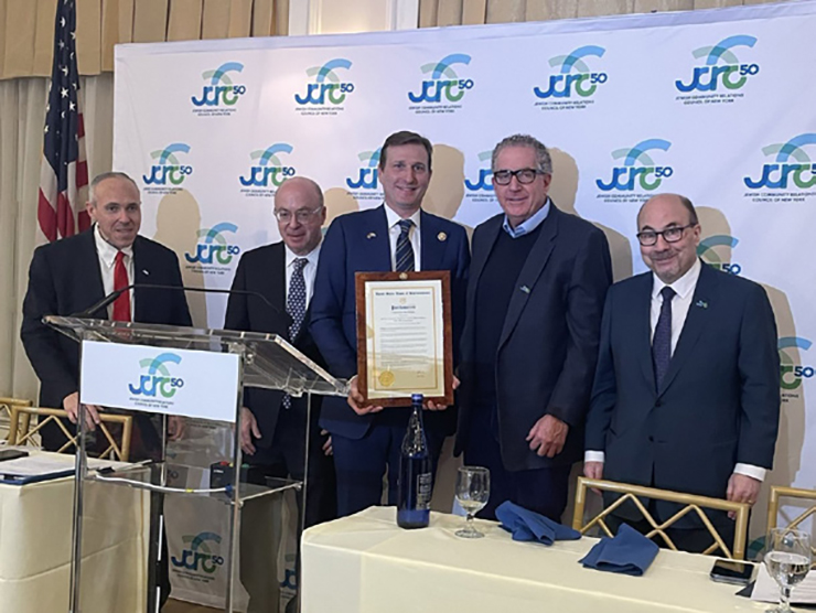Treyger invited attendees to view JCRC’s 50th anniversary exhibit, previewed an expanded display at UJA’s 74 Art Gallery, and announced a May 11 gala honoring Meryl Tisch and Warren “Jupiter” Weiss. He thanked City Council Speaker Julie Menin for advancing a forthcoming street co-naming to mark the milestone.