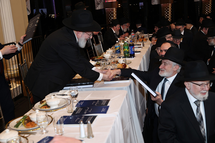 The tone for the evening was set long before the first guest took a seat at the dinner table. In a departure from the standard social reception, the pre-program hours were dedicated to intensive Torah study. Upstairs, rooms were temporarily transformed into satellite batei medrash, as shiurim were delivered by the yeshivah’s distinguished magidei shiur and the Rosh HaYeshivah, HaRav Doniel Lander.