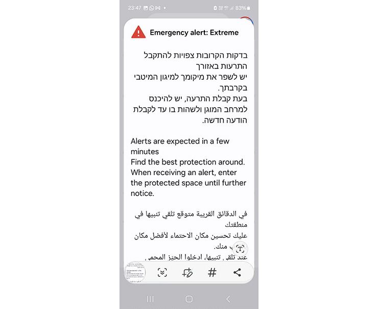 Buzz! Buzz! The 8:15 a.m. warning seemed longer this time – and louder. Not exactly what I remembered from the previous war with Iran, but the message was clear. Go! Fast!