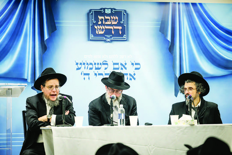 Over the course of Shabbos Kinnus Olam Hatorah, as the Dirshu convention is called, the many hundreds of participants had the tremendous zechus to hear Divrei Torah and guidance from luminaries such as HaGaon HaRav Hillel David, shlita, Rav Kehillas Yeshivas Shaarei Torah, HaGaon HaRav Yeruchem Olshin, shlita, Rosh Yeshiva of Beth Medrash Govoha of Lakewood, HaGaon HaRav Yitzchok Sorotzkin, shlita, Rosh Yeshivas Telshe and Mesivta of Lakewood; HaGaon HaRav Shlomo Feivel Schustal, shlita, Rosh Yeshiva of Yeshiva Toras Yerachmiel; HaGaon,HaRav Yechiel Michel Steinmetz, shlita, the Skverer Dayan of Boro Park, HaGaon HaRav Chaim Mordechai Ausband, shlita, Rosh Yeshivas Ateres Shlomo; HaGaon HaRav Dovid Goldberg, shlita, Rosh Yeshivas Telshe, Rav Dovid Hofstedter, shlita, Nasi of Dirshu, among many other prominent Rabbanim and Roshei Yeshiva.