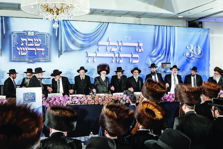 The conclusion of the Melava Malka, the culmination of the Shabbos, cannot possibly be described in an article. One can give over the main message of each drasha in an article, but one simply cannot, with dry ink and paper, describe the dancing after the Melava Malka. The thousands who danced with such elevation, such dveikus, that lasted into the wee hours of the morning; the way they came to dance with Rav Dovid Hofstedter, the simcha that emanated from them and the contagious enthusiasm that permeated the hall was indescribable. It was a dancing of simcha, of dveikus and of deep hakaras hatov to Dirshu and for what it has done to their lives.