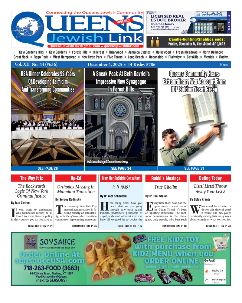 Before I discuss the remainder of my trip, I want to comment on the photograph that accompanied my article in last week’s Queens Jewish Link. It was...