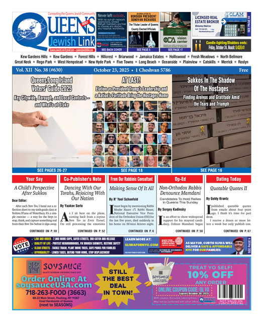 Early voting across New York State begins this Shabbos, continuing until November 2, with the last day to vote on November 4. The top contest on the...