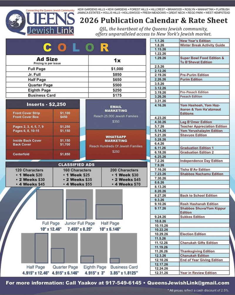 and major Jewish shopping areas throughout Queens’ Jewish neighborhoods - Thousands of views of our virtual paper online