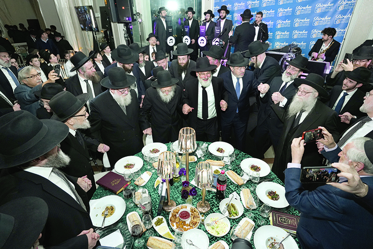 Emotion gripped the assemblage. Wide-eyed with awe, everyone watched the Gaon and Tzaddik, HaGaon HaRav Shimon Galei, shlita, walk into the hall of the White Shul in Far Rockaway, arm-in-arm with the Nasi of Dirshu Rav Dovid Hofstedter, shlita. It was just a harbinger of what was to come in a night full of spiritual and emotional highlights that brought together some five hundred members of the Far Rockaway-Five Towns communities.