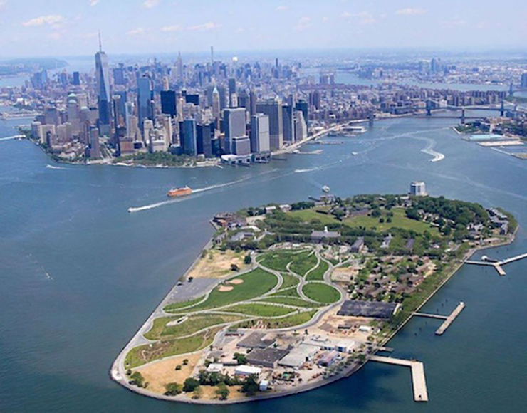 Situated at the confluence of the East River and New York Harbor, with views of Downtown Manhattan, the Brooklyn Bridge, and the Statue of Liberty, Governors Island offers 172 acres of history, scenery, and public events. Formerly a military and Coast Guard base, the island is filled with public art, educational programs, and the highest playground slide in the city. Visitors can take tours on topics such as ecology, history, birding, and gardening. Situated within a five-minute ferry ride from either Brooklyn or Manhattan, it feels like a world unto itself.