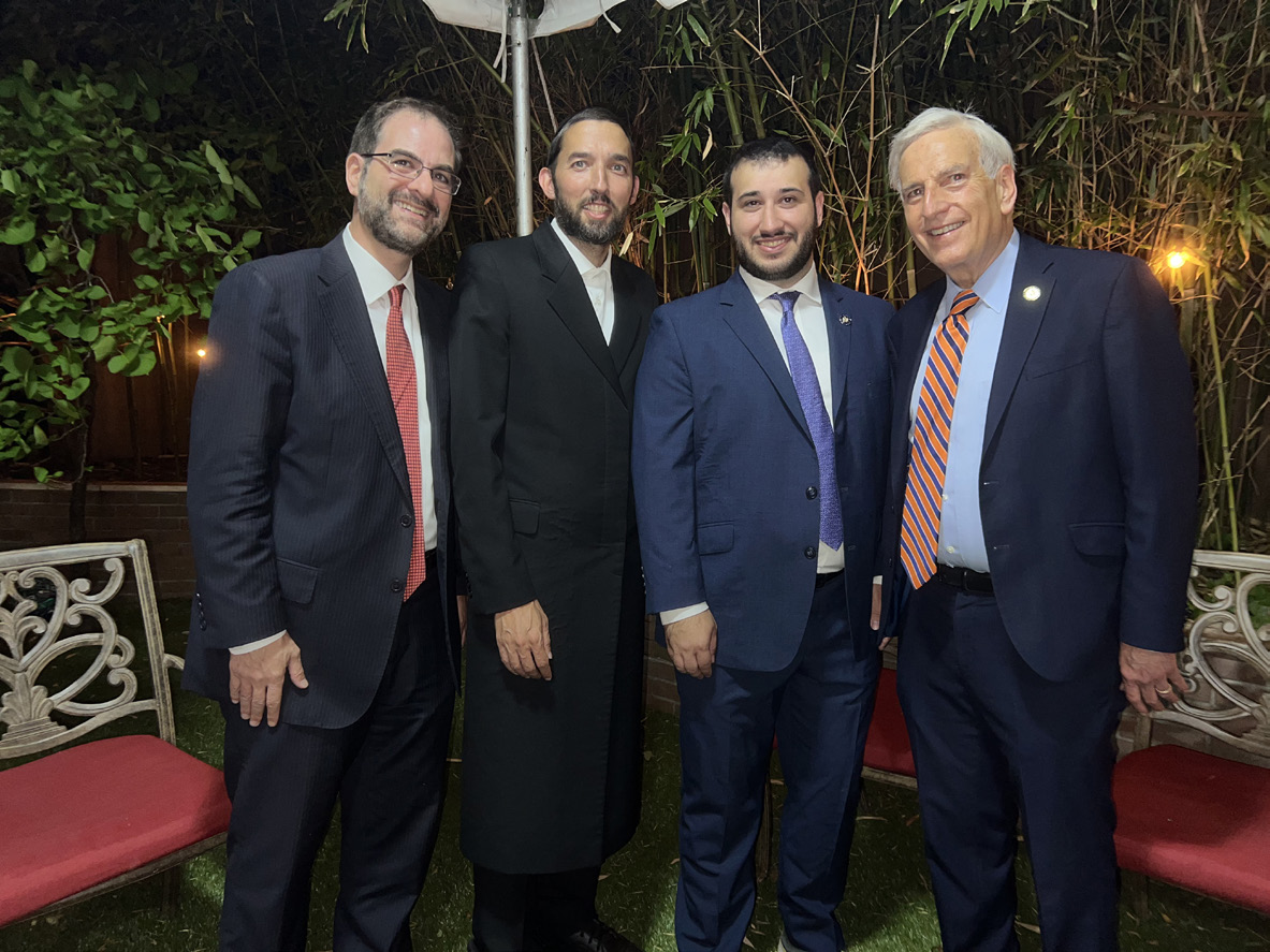 “Am Yisrael is very, very lucky to have amazing leaders, and they’re very, very much needed,” said event emcee Rabbi Yaniv Meirov, rabbi at the nearby Cong. Charm Circle. “This past Sunday, Park Drive East was a very busy street,” continued Meirov, referring to the anti-Israel protests that ensued from an Israel real estate event that went virtual instead of being held at his shul. “The lesson is that unfortunately there is a very big attack on the Jewish people, and we need leaders like Assemblymember Berger, who is doing an amazing job in the Assembly” to protect our freedoms.