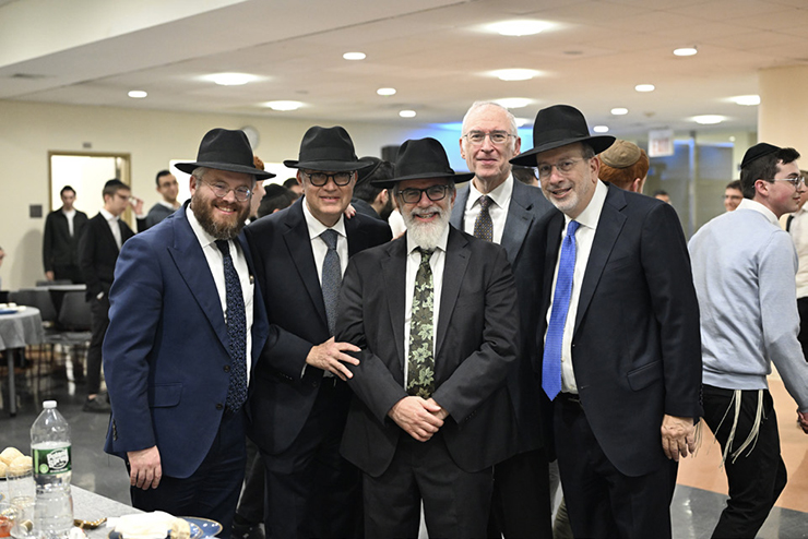 The siyum’s speakers — Rabbi Moshe Krupka, Touro’s executive vice president, Rabbi Doniel Lander, the university’s chancellor, Rabbi Yonason Sacks rosh hayeshivah of Beis Medrash L’Talmud at LCM, Dr. Shalom Huberfeld, project sponsor— praised Dr. Abramson’s humility and creative scholarship.