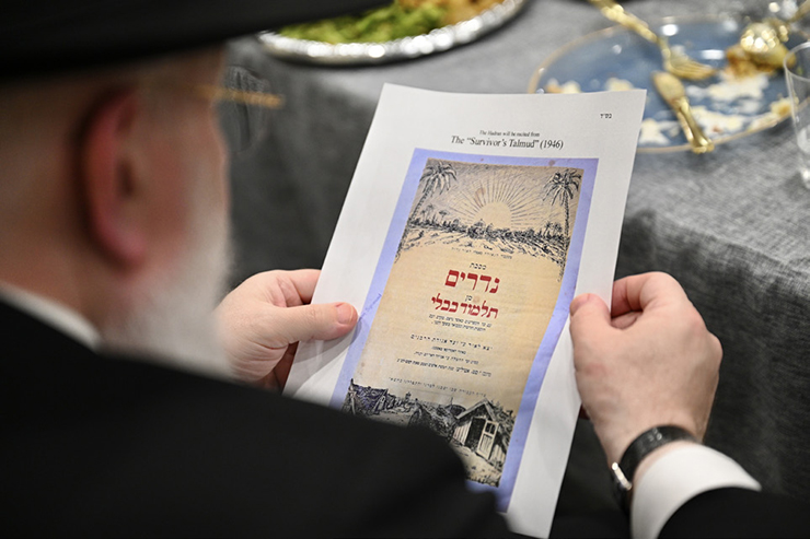 Fittingly, Dr. Abramson read the hadran from a historical Gemara: the so-called “survivors’ Talmud,” printed in the shadow of the Holocaust in a displaced persons camp. Its worn pages, he noted, were themselves a testament to Jewish perseverance.