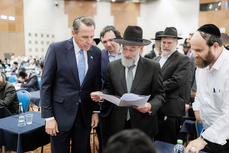 Those words were said with great passion by Ambassador Mark Walker, President Trump’s nominee for ambassador-at-large for International Religious Freedom, at a special panel discussion and meeting held on the sidelines of Dirshu’s massive cumulative test on Shas and Shulchan Aruch at the Binyanei Haumah Convention Center in Yerushalayim earlier this month. Mr. Walker is a former Republican Congressman from North Carolina.