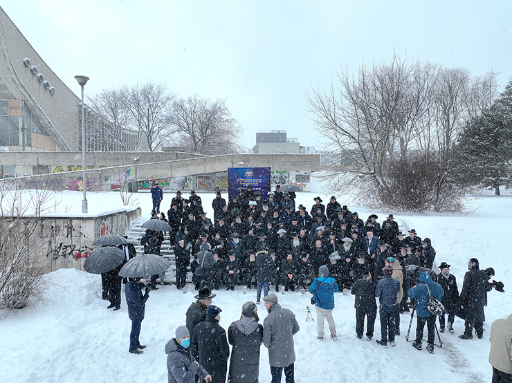 Under the bitter cold Belarusian sky, HaRav Shimon Galai shlit”a began the tefillos. With tears and emotion, he led the group, piercing the shaarei shomayim, followed by HaRav Dovid Shimon Zoldan shlit”a and Rav Boruch Sternbuch shlit”a. Rav Masud Ben Shimon shlit”a then said the tefillah composed by HaGaon HaRav Yaakov Hillel shlit”a.