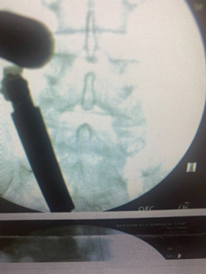 Indeed, it did reduce the symptoms, but not enough for this very active gentleman. So…earlier this month he was brought to the Bergenfield Surgical Center and, using a microscopic tubular approach and a small, 1.8 cm incision on his back, a tube was docked onto his L2-3 left lateral space and the herniated disc, using microscopic assistance, was removed. The patient left the surgery center approximately an hour and one-half after the procedure, pain reduced and the wounds healing very well!! Photos are enclosed.