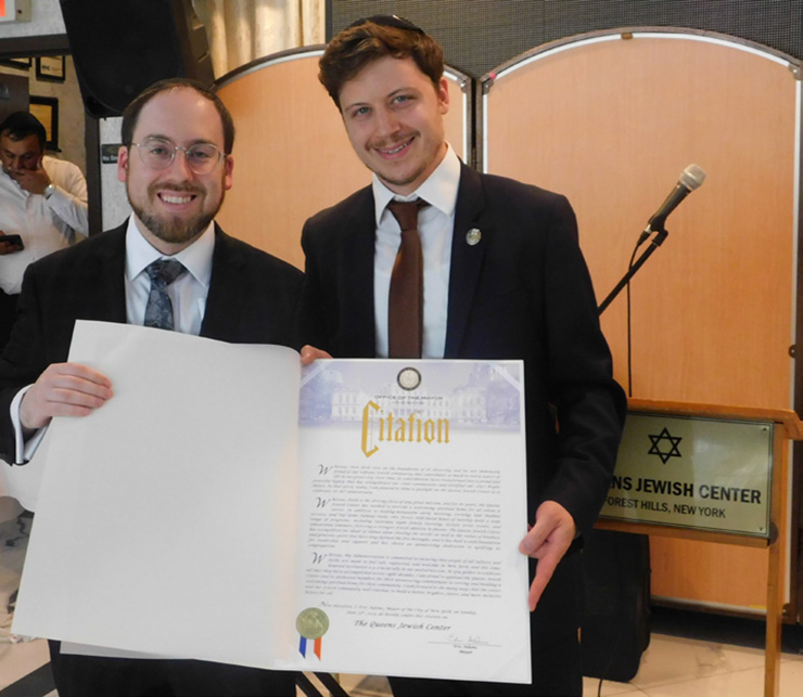 Moshe Davis, Senior Jewish Liaison for Mayor Eric Adams, presented a Citation saying the Mayor “is proud to applaud the Queens Jewish Center and its dedicated members for their unwavering commitment to serving and building a welcoming spiritual home for the community.”