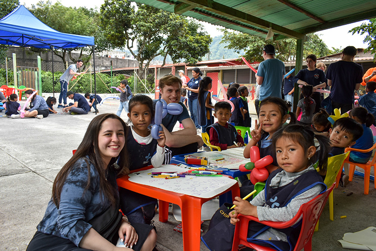Highlights of the trip included a volcano hike and beach stop on the way, and an amazing Shabbat afternoon experience for the youth in Guatemala City’s beautiful shul, co-led by Schneier Scholar Alexandra Hadge ’25S and Sydney Hoffman ’25S; a fascinating walking tour of the city; and the creating of hundreds of balloon animals at each destination to brighten the lives of local schoolchildren.