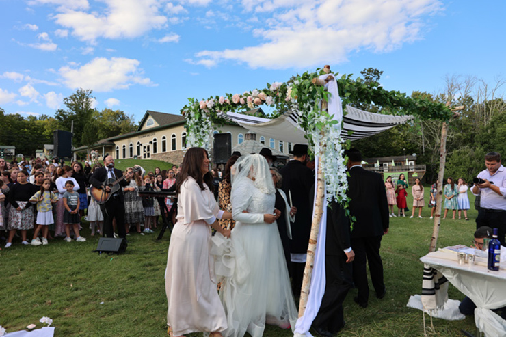 A total of 500 campers, along with the lower and upper staff members at Kaylie, gathered on the grass to witness the chasan and kallah walking down the aisle in front of Lake Kestenbaum. For many campers, this was their first experience attending a wedding. They observed the chasan being escorted by family and esteemed rabbanim from various parts of the world, including the chasan’s rav from Quito, Ecuador, and rabbanim from the Morristown yeshivah. Under the chupah, Rabbi Moshe Weinberger of Congregation Aish Kodesh officiated as the m’sadeir kiddushin, while Rabbi Zalman Wolowik of the Chabad of the Five Towns, served as an eid kiddushin. Distinguished guests from around the globe, such as Mrs. Gloria Kaylie, the camp’s namesake, Mr. David Mandel, CEO of Ohel, and Mr. Jay Kestenbaum, co-president of the board of OHEL, graced the event. The wedding was further enhanced by the captivating performance of world-famous singer Eytan Katz, who serenaded the couple down the aisle with a Chabad nigun. As the night progressed, the dance floor exuded an infectious energy, with campers and staff joining in to dance the night away.