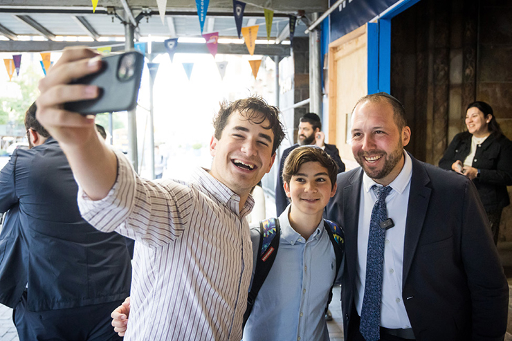 The energy was electric as the buses pulled up on the first day of school at Yeshiva University High School for Boys. Music filled the air as administrators lined the front entrance to greet each talmid with smiles and excitement.