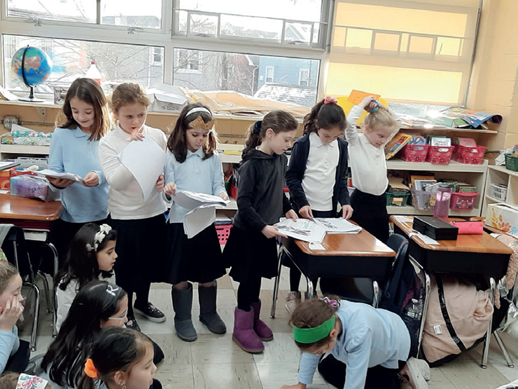 The second graders at the Bais Yaakov Academy of Queens are becoming better readers every day! They recently read “Bremen Town Musicians,” a dramatic fairy tale. The text has continuous dialogue and a repetitive pattern of events that create a story structure both entertaining and fun to read. There are singing animals that share a common problem, outsmart robbers, and find jobs as musicians. Since drama is meant to be acted out, the second graders used this opportunity to develop their dramatic reading and performing skills! In small groups, the girls prepared to perform the play to their classmates. The constant practice and rereading increased their reading fluency. The text has plenty of dialogue, which helped developed their awareness of appropriate expression while reading.