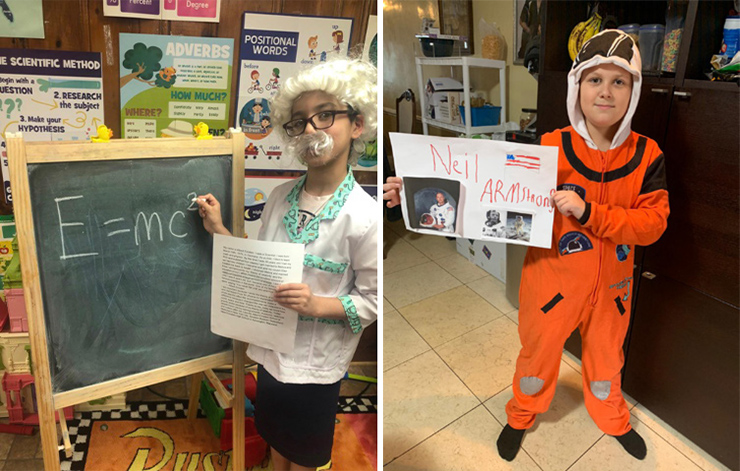 During the remainder of the week, learning continued with the third graders presenting their biography reports. Students dressed in costumes and shared their research reports. The other students got to learn about people like Neil Armstrong, Abigail Adams, Thomas Jefferson, Michael Jordon, Julia Child, Amelia Earhart, Martin Luther King, Jr., and Jane Goodall, to name a few. And the fourth-grade boys in 4-306, who have been learning for their unit on immigrants, each interviewed someone who immigrated to the US and wrote stories that were published into a book.
