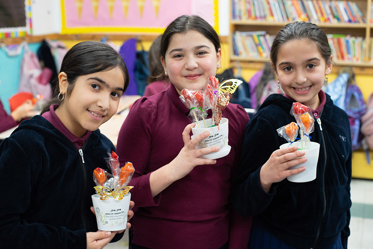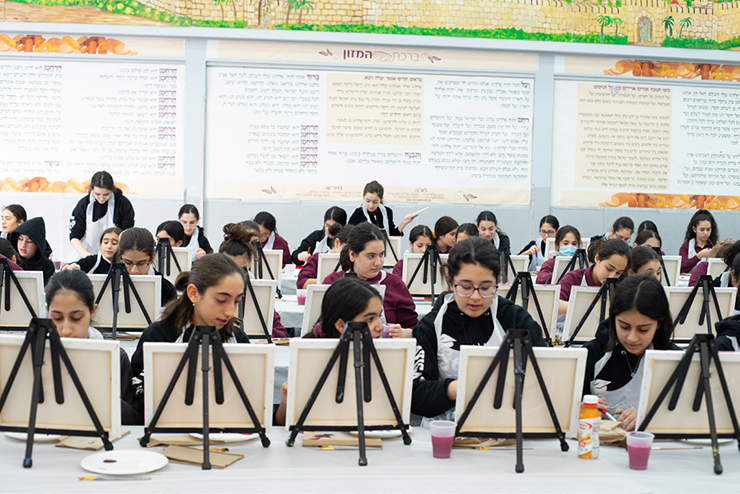 All the girls were treated to exciting Tu BiSh’vat activities. The Pre-1A and the First Grade decorated special picture frames using pastels. The First Grade had a bonus activity of making baskets with dried fruit with Morah Pinkhasov. The Second-Fifth Grades enjoyed making edible flowers with the help of our Eighth-Grade student, Meira Sofiev. The Sixth-Eighth Grade classes participated in Tu BiSh’vat Canvas Painting led by Mrs. Sharon Halali, where each girl proved to have lots of artistic talent!