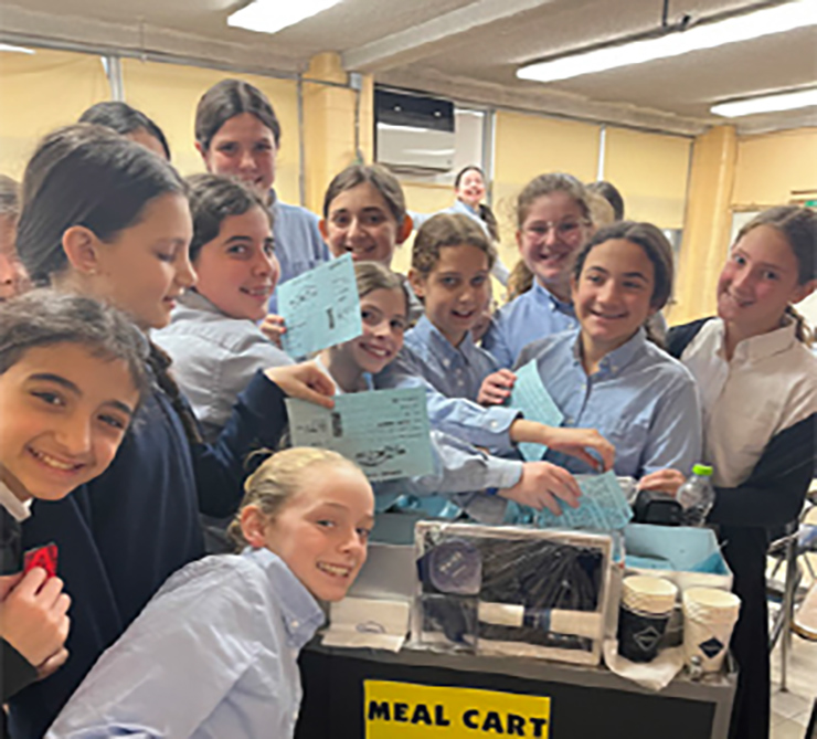 Every day, the students filled out Airplane Raffle Tickets, checking off how they enhanced their t’filah, and sharing what they learned. Each day, the musical Meal Cart could be heard as Mrs. Elisa Taub, program director, dressed as a flight attendant, went around to all the classes with a realistic-looking Meal Cart to collect the Boarding Pass/Airplane Tickets.