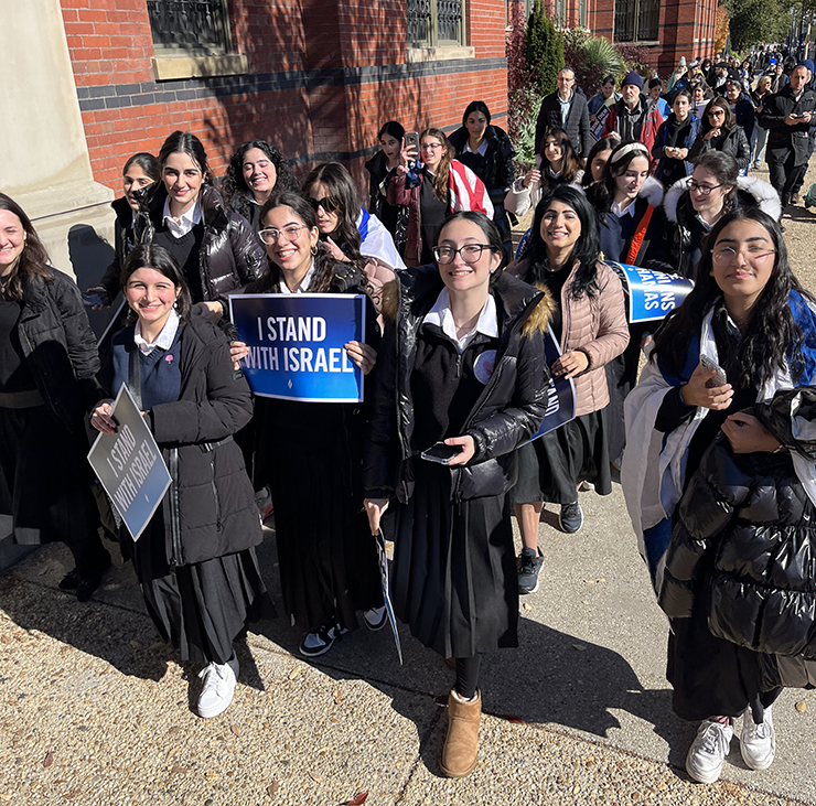 In a remarkable display of unity and commitment, members of the Yeshiva Sha’arei Zion Girls High School recently participated in the March for Israel held in Washington, DC. The event brought together many of the YSZ girls, Mrs. Zerykier, menahelet; several faculty members; Rabbi Avraham Fridman, principal, YSZ Elementary; some of his eighth grade students; and members of the Bukharian community, collectively representing our community’s unwavering support for Israel.