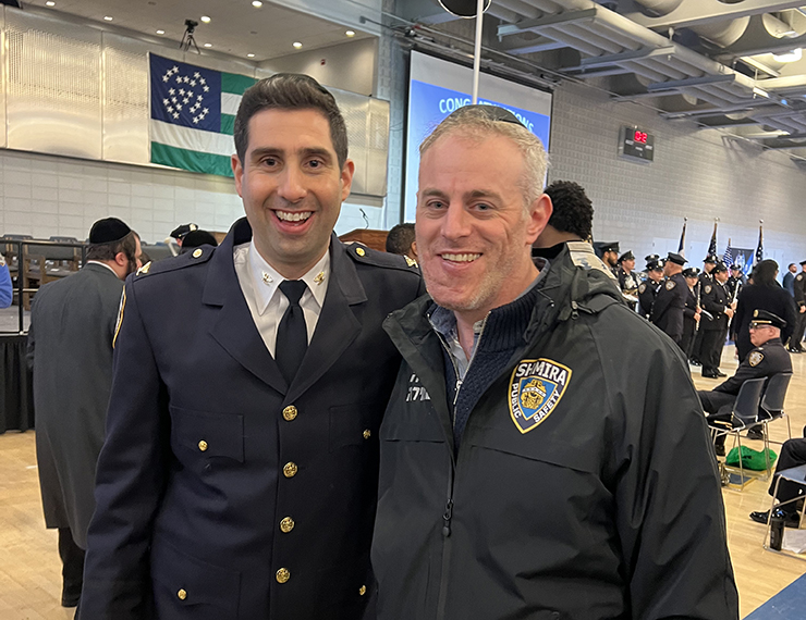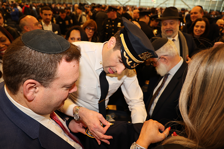 Dignitaries at the ceremony that promoted some 230 officers included Menashe Shapiro, Deputy Chief of Staff; Joel Eisdorfer, Senior Advisor to the Mayor; Moshe Davis, Senior Jewish Liaison, Mayor’s Community Affairs Unit; Chanina Sperlin, Chabad; R’ Abe Friedman, Satmar; R’ Mendy Mirocznik, COJO; Kalman Yeger, NYC Council Member; Pesach Osina, Jewish Liaison to NYC Council Speaker Adrienne Adams; NYPD Clergy Liaison David Heskiel.