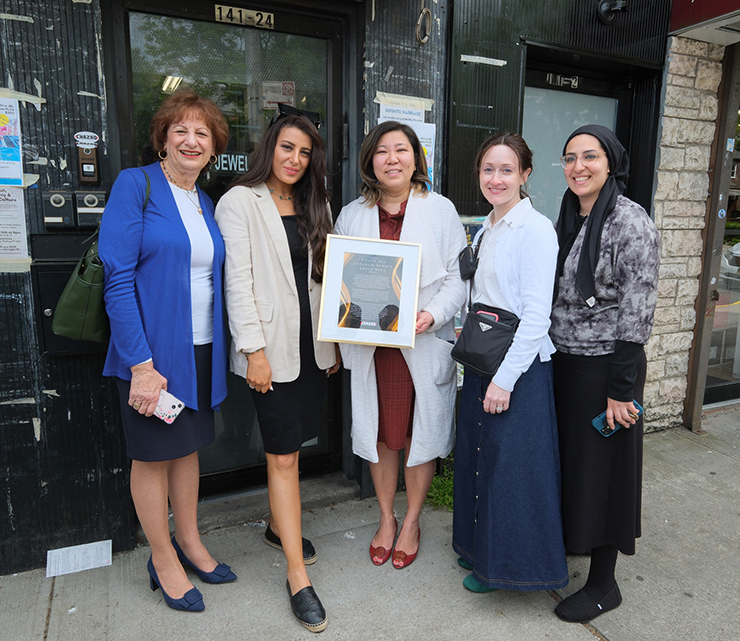 The community’s gratitude was highlighted this past Tuesday morning in front of the Chazaq headquarters where Congress Member Meng was presented a framed acknowledgement of our deep appreciation. Those present stated how we stand with Meng in her support of her stance on Israel. “Thank you for your steadfast advocacy and for always standing on the side of the Jewish community both in Queens, which you proudly represent, and nationwide, as you advocate from Washington at the US House of Representatives,” stated Rabbi Meirov.