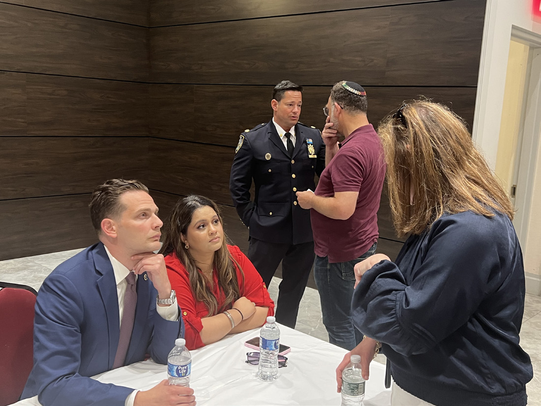 Deputy Chief Taylor detailed challenges for the Jewish community stemming from Washington and the New York State legislature, mentioning, “It is tough times for law enforcement.” As a former member of Hatzolah of Queens and Great Neck, notably responding as one of the first EMTs on 9/11, Taylor recognized their continued NYPD partnership. Taylor spoke of the recent handful of Lag BaOmer hadlakahs that he attended in conjunction with Queens Shmira, expressing that “a lot goes into making them happen.” He also echoed the mayor’s frustration on legislation that was passed to hurt or hinder policy. “It is just incredible how we would hope that we have partners in government helping and supporting us, and if they are not going to do that, at least be neutral.”
