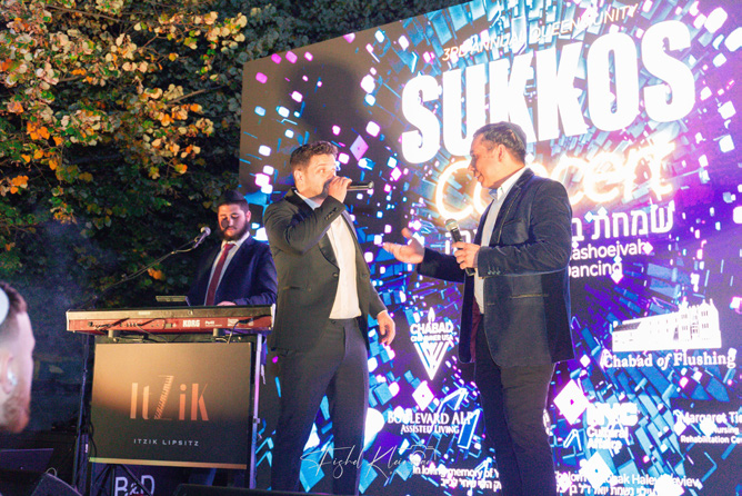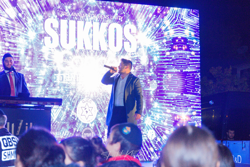 For the third year running, the Queens unity Sukkos concert drew a massive crowd in central Kew Gardens Hills. The free Simchas Beis Hashoeivah experience was once again held along Vleigh Place in front of the Queens Public Library and attracted an energetic audience of 2,500 spanning a myriad of Queens communities, including many unaffiliated Jews waiting for their spark to ignite. Thirty-year-old Israeli music sensation Itzik Dadya wowed the crowd with popular Jewish tunes new and old as well as several of his own masterful songs. Beginning shortly after seven in the evening on the third night of Chol HaMoed, festive dancing in the spirit of the chag quickly ensued with jubilation all around.