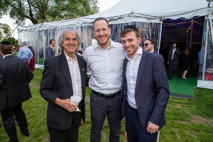 Guests made a l’chayim on wine as they dined on pizza, falafel, sushi, and baked ziti, part of the mayor’s vegetarian diet, as acclaimed musician Benny Friedman wowed the crowd.