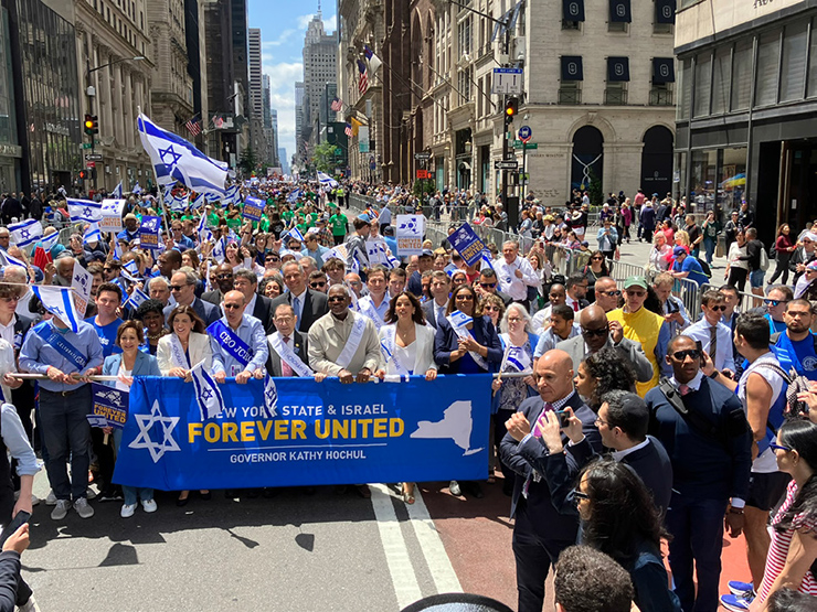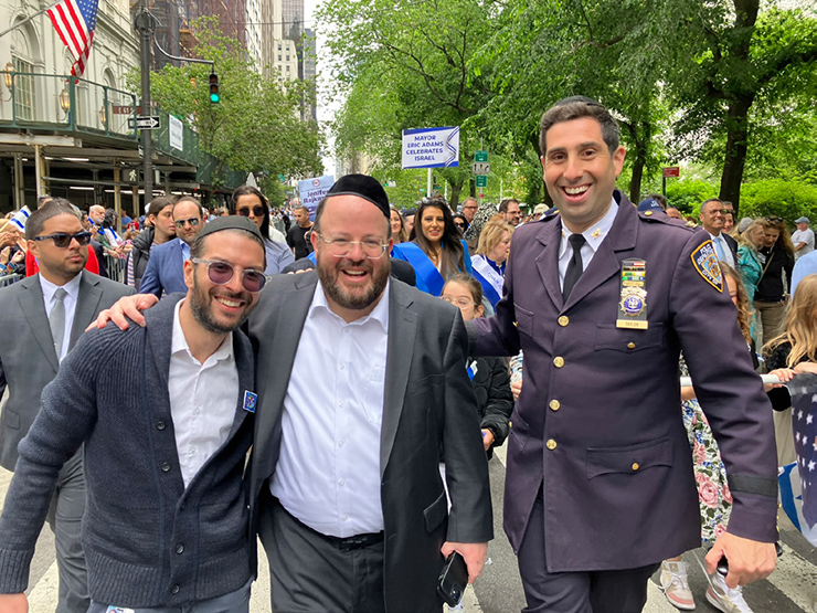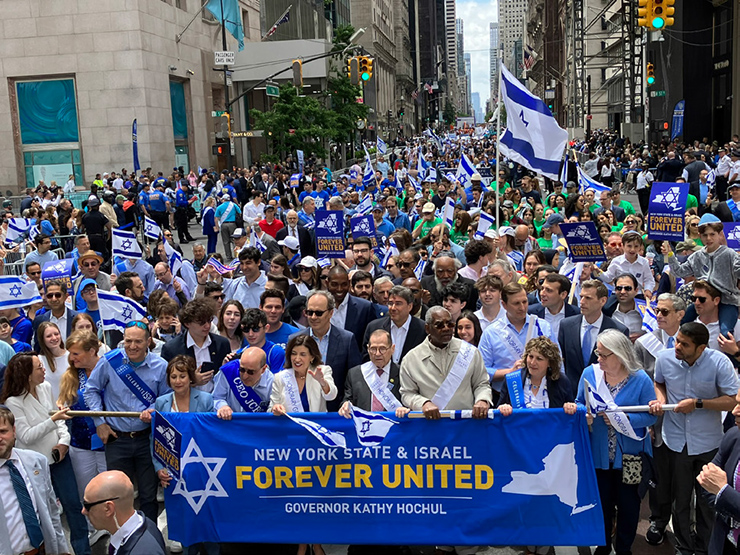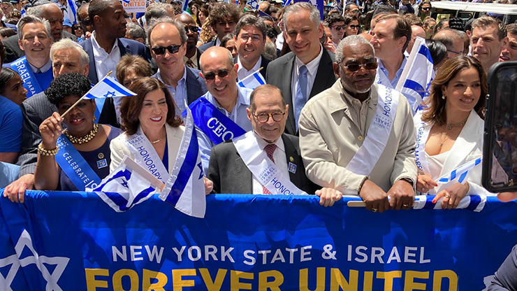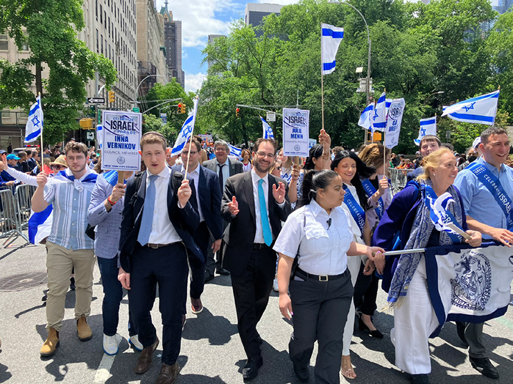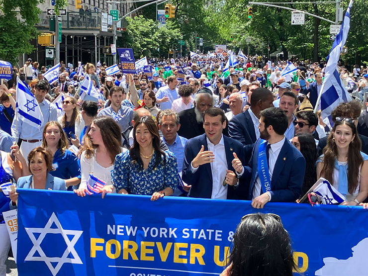 The 2023 Celebrate Israel Parade was a radiant expression of connection. This year’s parade brought together elected officials from across the city and state, including our Mayor, Governor, Attorney General, NYS Comptroller, Members of Congress, State Legislature, Assembly, our NYC Council led by Speaker Adrienne Adams, and notably Nassau County Executive Bruce Blakeman. Additionally, Borough Presidents and District Attorneys joined while for the first time ever, local teens were matched with elected officials to get a sense of political life as they marched in unity. Special shout out to Shlomo Golombeck, who deejayed for Governor Hochul, and to Jake Adler, the governor’s Director of Jewish Affairs, who arranged for a wide array of electeds to stand alongside the Hochul, and Eva Wyner, Deputy Director of Jewish Affairs for the governor, who announced each elected more than once, including our leading Congress Member Greg Meeks, and my friend Assembly Member Daniel Rosenthal.