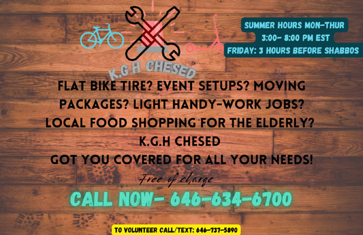 Their latest venture is reminiscent of the Chevra, an offshoot of Chaverim that existed mostly in Kew Gardens, where boys would help their peers fix flat tires on bicycles and the like. Rubinov and Yusupov have gone a step beyond, offering their services to set up events, move packages, take on light handiwork like mini construction projects, conduct local food shopping for seniors, and of course fix flat tires on bikes. They are truly a light for the Kew Gardens Hills community, where their completely free efforts are centric.