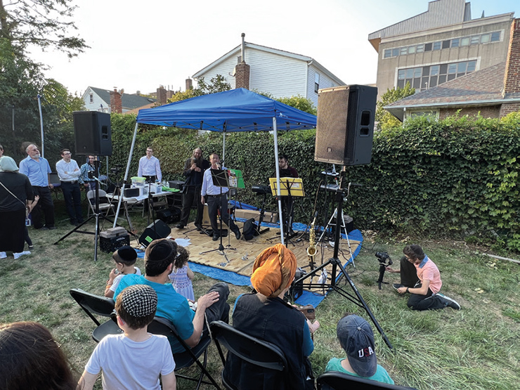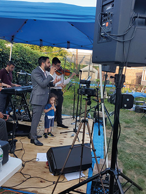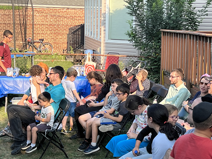 On Sunday evening, August 6, I joined neighborhood families for the annual Stahler Orchestra Music-A-Thon, now in its sixth year. The program has steadily grown and now welcomed the generosity of the Hershkowitz family, who opened their backyard to the extended Stahler family and friends for this worthy cause. Under the shade of a tent, the Stahlers set up shop and impressed their audience with classic Jewish tunes. Special thanks to Dovid Roberts, Ushi Shapiro, and Rabbi Yehoshua for adding to the entertainment, and to Moshe Finkel for standing on stilts and juggling!