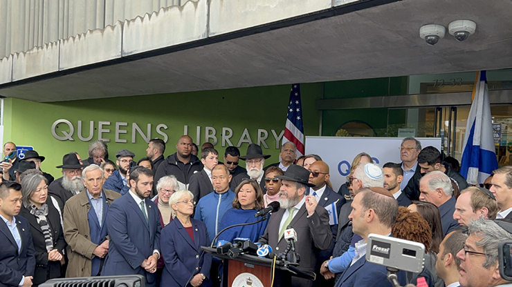 This past Monday afternoon, in front of the Kew Gardens Hills branch of the Queens Public Library, New York lawmakers and hundreds of community members joined forces to denounce Hamas’ ruthless terror attack on Israel.